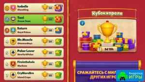 Royal Match — это увлекательный и затягивающий игровой проект для любых устройств на Android, в котором вам предстоит проходить разнообразные уровни и постепенно приводить в порядок собственный замок, нуждающийся в обновлении и ремонте.