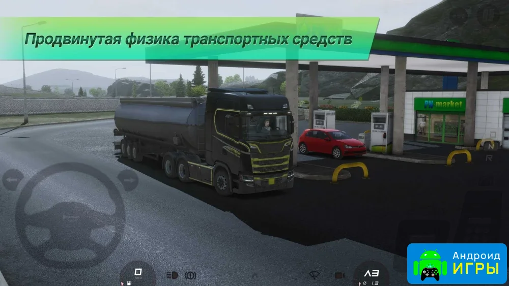 В этой игре каждый пользователь получает возможность попробовать себя в качестве настоящего водителя фуры. Игровой процесс построен так, чтобы сделать каждую поездку максимально насыщенной. Интенсивная езда, качественная визуальная часть, детализированная физическая модель поведения грузовика, правдоподобные погодные явления, система загрязнения и очистки, проработанные кабины, массивные трейлеры и другие особенности формируют реалистичную атмосферу симулятора. Здесь любой сможет почувствовать себя профессиональным дальнобойщиком.МАКСИМАЛЬНАЯ РЕАЛИСТИЧНОСТЬ