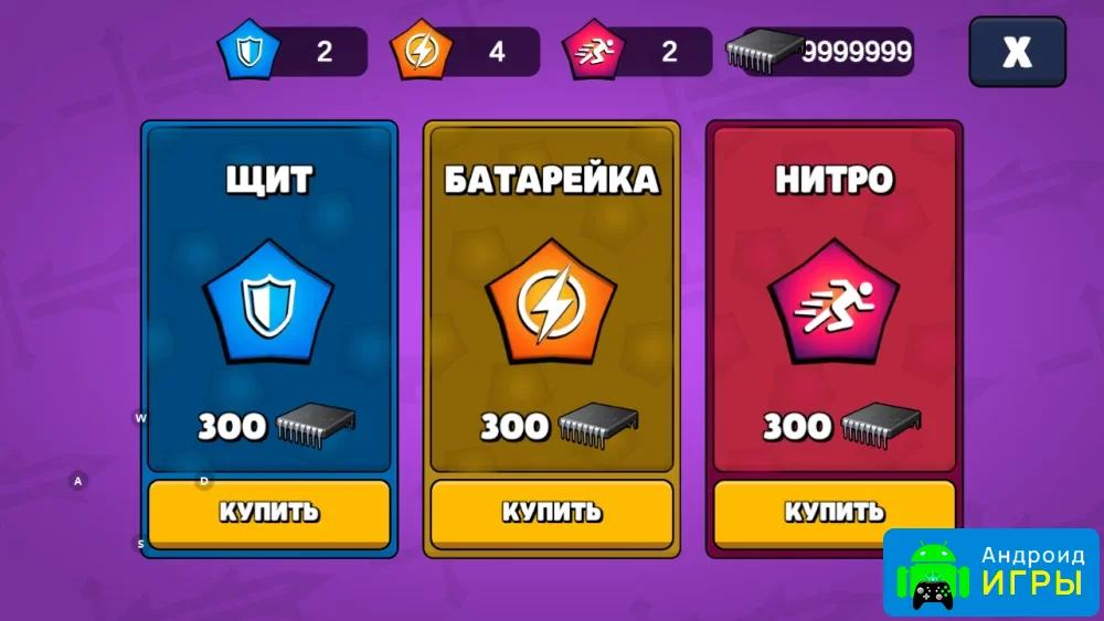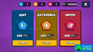 В игре можно заработать 15 уникальных достижений, а для прокачки персонажей доступны разнообразные бустеры:- Щит уменьшает получаемый урон на 20 секунд, действует один раз за игру;
