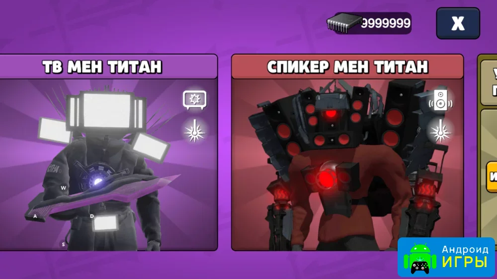 Кроме того, в магазине доступны разные скины для каждого типа персонажей: агенты (спикер мен, тв мен, камера мен, камера вумен и их титановские версии) и скибиди-туалеты (обычный, мутант, скибиди-пила).