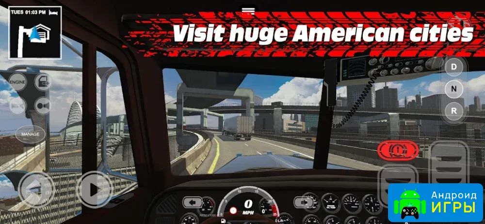 Проект создаёт эффект присутствия за счёт качественной графики и реалистичных природных условий. Вы отправляетесь в путь на мощной фуре, постепенно открывая новые территории Америки. На трассе сменяются день и ночь, начинается дождь или туман, кузов покрывается грязью, а управление меняется в зависимости от дорожного покрытия. Игра предлагает множество заданий, связанных с перевозкой грузов — каждый маршрут требует внимательности, аккуратности и умения справляться с трудностями. Здесь можно полностью расслабиться, наблюдая за изменением природы и наслаждаясь движением по длинным американским дорогам.Опыт вождения от первого лица