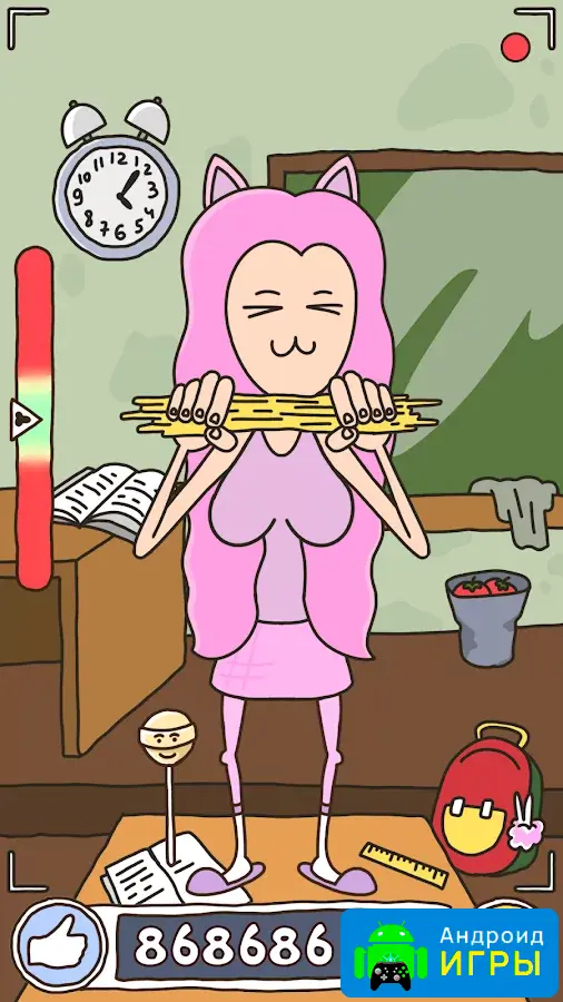 Игра про спагетти 2 — это увлекательный казуальный проект с элементами аркады и кликера для вашего смартфона. В этой игре вы станете блогером, который зарабатывает популярность и лайки с помощью обычных спагетти. На нашем сайте доступна взломанная версия, где можно проходить уровни и получать огромное количество лайков — внутренней валюты игры.
