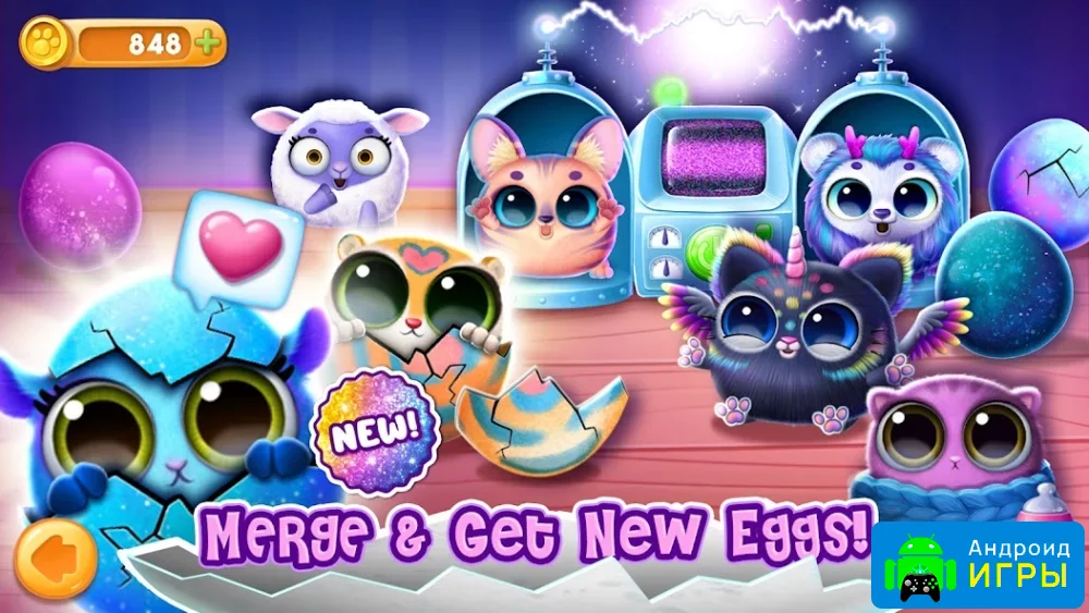 Начните с одного маленького героя и постепенно увеличивайте коллекцию. Со временем вы сможете собрать всех восемнадцать уникальных питомцев, включая: котика, зебру, хомячка, собачку, медвежонка, единорога и множество других милых существ.Каждый новый питомец появляется из волшебного яйца. Чтобы его получить, нужно использовать специальный аппарат, который соединяет коды двух существующих героев и создаёт новое яйцо. Из него вылупляется очередной питомец, готовый к уходу и играм.