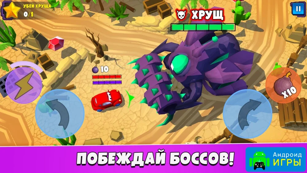 На арене нет правил: вы можете таранить машины противников, уничтожать их и пытаться самим избегать смертельных атак. Тренируйтесь уходить от ударов, выбирайте выгодные позиции и используйте окружение в свою пользу.