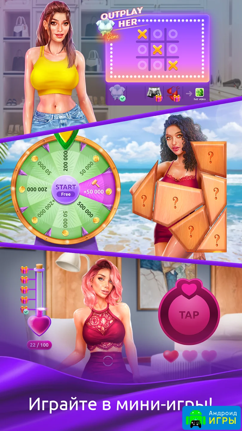 Этот казуальный проект создан на основе классической игры в бутылочку. Игрок получает шанс познакомиться с широким кругом обаятельных девушек, с которыми можно общаться, флиртовать и развивать отношения. Чтобы расположить их к себе, стоит уделять внимание подаркам, проводить совместные моменты и постепенно определяться, чей характер Вам ближе других. Каждая девушка будет делиться личными историями, показывать фотографии и рассказывать о значимых событиях своей жизни. По сюжету пользователь оказывается в неизведанном городе, где на каждом шагу встречаются интересные героини, открытые к знакомству и флирту в любой подходящий момент.Общайтесь и флиртуйте