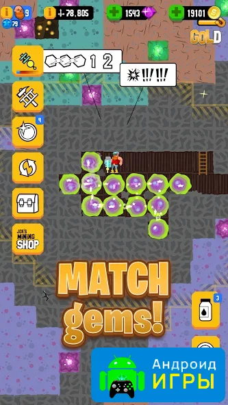 Однако будьте внимательны: в шахте вас поджидают огромные каменные валуны, которые могут обрушиться в любой момент. Чтобы заработать больше, важно комбинировать элементы одинакового цвета и создавать удачные цепочки.
