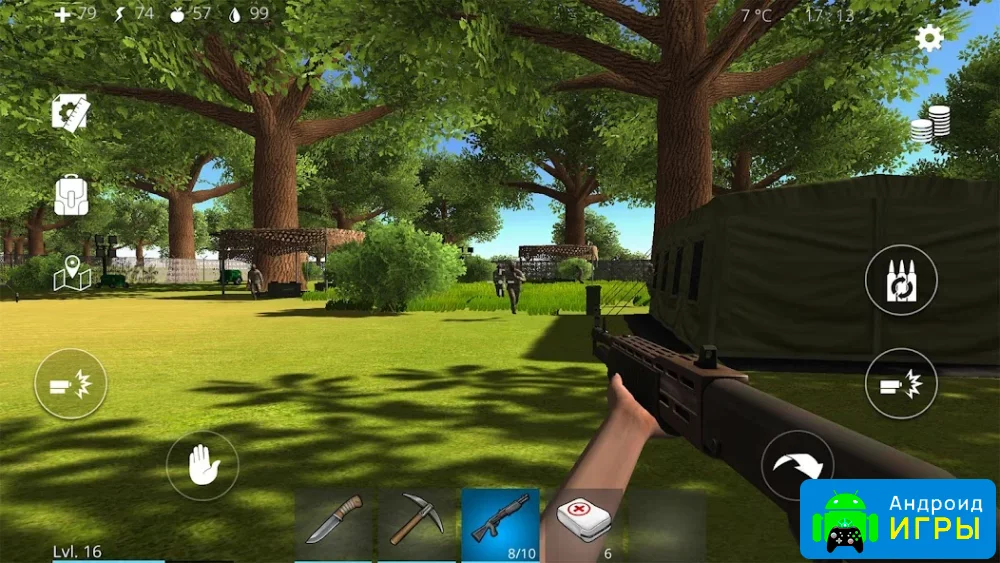 На острове доступно множество материалов для создания полезных предметов. Игрок может строить укрытия, мастерить инструменты и готовить пищу, постепенно совершенствуя свои навыки выживания. Цикл дня и ночи добавляет реализма: ночью становится темнее и опаснее, а днем открываются новые возможности для исследования. Принятие решений влияет на эффективность действий и выживаемость героя.Визуальная составляющая