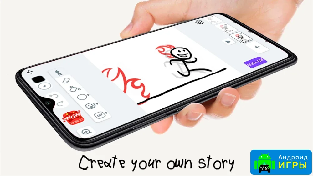 Stickman: рисовать мультики — творческое приложение для Android, с помощью которого каждый пользователь может попробовать себя в роли аниматора и создать собственный мультфильм. Процесс построен максимально просто и интуитивно: достаточно взять виртуальный карандаш, выбрать нужные элементы и начать воплощать идеи на экране смартфона или планшета.