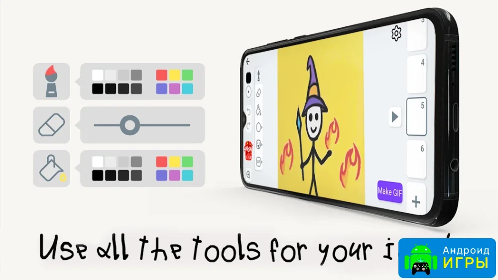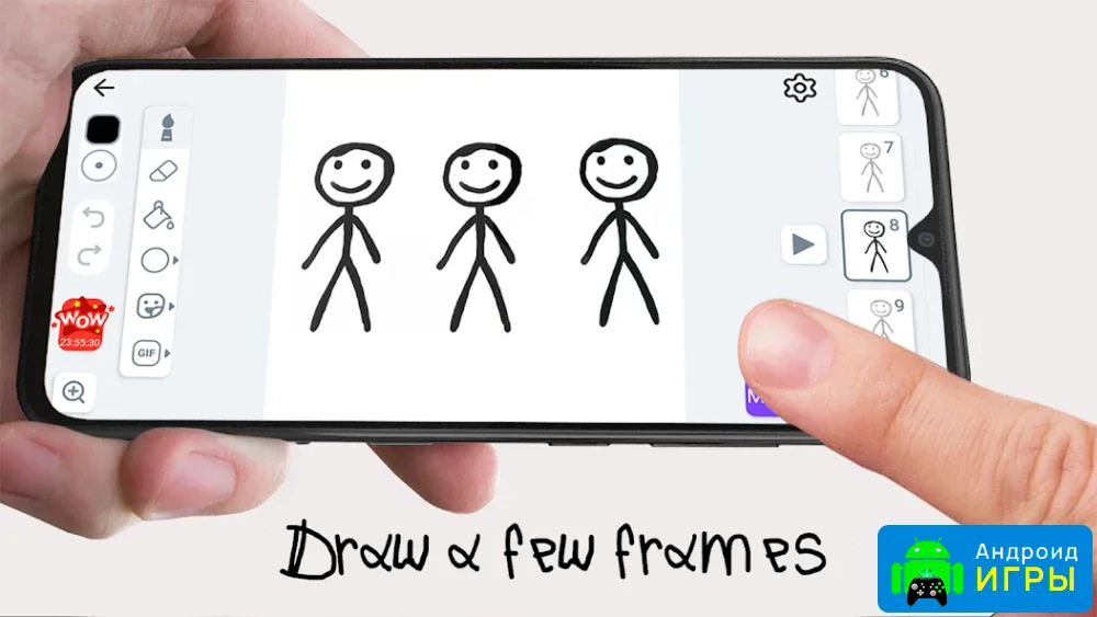 Stickman: рисовать мультики — это удобный и увлекательный инструмент для создания анимации, который подойдёт как новичкам, так и тем, кто уже увлекается рисованием. Приложение вдохновляет на творчество, помогает развивать фантазию и превращает процесс создания мультфильмов в настоящее удовольствие.
