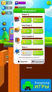 - Возможность прокачивать бур и улучшать оборудование;