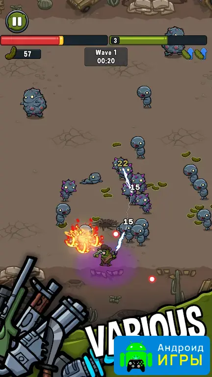 Визуально игра выполнена в красочном и слегка мультяшном стиле, который вызывает приятные ассоциации с классическими аркадами. Яркие эффекты, плавные анимации и продуманный интерфейс делают игровой процесс комфортным и понятным. Управление интуитивное, поэтому легко сосредоточиться на сражениях и не отвлекаться на лишние детали.Pickle Pete: Уцелевший — это увлекательное приключение с необычным героем, насыщенным экшеном и лёгкой иронией, которое способно надолго увлечь любителей динамичных мобильных игр.