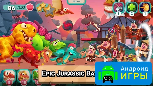 Одной из ключевых особенностей игры является возможность перемещаться между эпохами с помощью загадочной временной воронки. Она переносит вас в различные временные отрезки, где обитают новые враги и поджидают всё более сложные испытания. По мере продвижения открываются новые виды динозавров, отличающиеся характеристиками и стилем боя. Среди них могут встретиться как по-настоящему полезные воины, так и комичные персонажи, добавляющие игре юмора. Всех бойцов можно улучшать, усиливая их способности, а также наряжать в забавные шляпы и броню, делая армию ещё более колоритной.Атмосфера и развитие