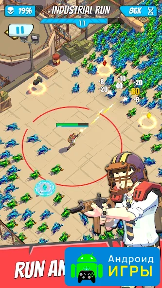 Главный герой сражается в одиночку, без поддержки союзников, поэтому каждая ошибка может стоить жизни. Ваша задача — уничтожать волны противников до того, как они подберутся слишком близко. События разворачиваются в засекреченной Зоне 51, что даёт уникальное преимущество: после гибели персонаж возрождается на базе, позволяя пробовать снова и снова. Вид сверху помогает контролировать ситуацию на поле боя, а разнообразный арсенал оружия и экипировки открывает простор для экспериментов с тактикой. Улучшая снаряжение, вы усиливаете героя и повышаете его шансы выжить в самых тяжёлых условиях.Сражения, режимы и боссы
