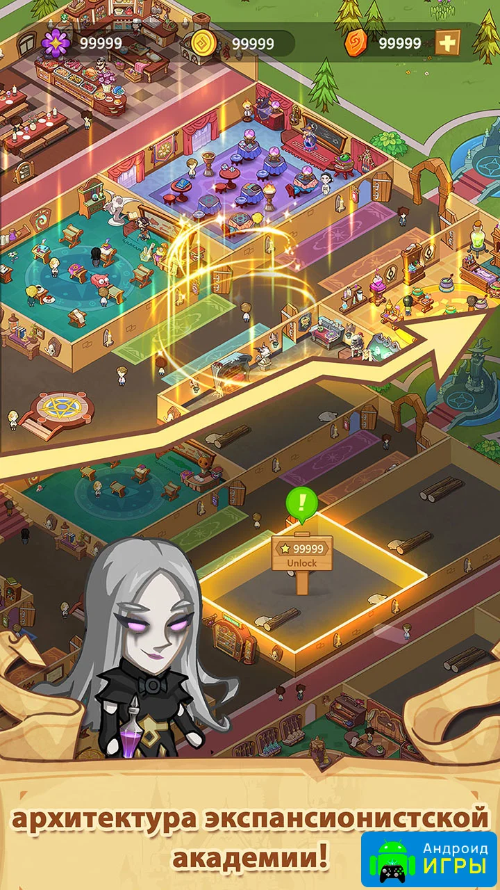 «Магическая школа» — это атмосферная казуальная игра-симулятор для устройств на базе Android, выполненная в формате экономической стратегии. Проект приглашает игроков погрузиться в фантастическую вселенную и взять под контроль развитие сети магических учебных заведений по всему миру. Игра сочетает в себе спокойный темп, продуманное управление ресурсами и приятную сказочную атмосферу.
