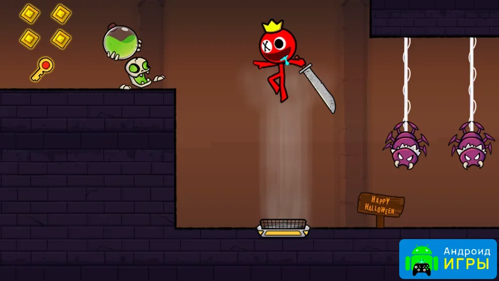 Отправляйтесь в захватывающее путешествие по миру, наполненному ловушками, врагами и хитроумными головоломками. Каждый уровень отличается уникальной сложностью и наполнением, поэтому скучать не придётся. На вашем пути встанут не только опасные противники, но и десятки различных препятствий, которые потребуют реакции и смекалки.За успешное прохождение уровней вы будете получать ценные награды, открывать бонусы и приобретать стильные скины, чтобы придать своему персонажу индивидуальность. Ваша главная цель — спасти возлюбленную из лап ужасных монстров. Готовы ли вы к такому опасному, но увлекательному приключению?