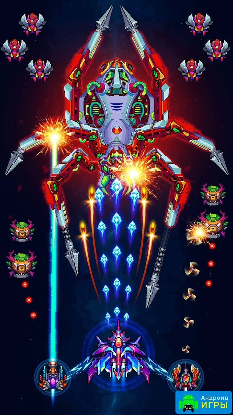 Galaxiga возвращает дух старых аркадных шутеров, добавляя современные возможности. В игре доступны мультиплеерные режимы, такие как 1vs1 и 1vs3, а также PvP-бои онлайн. Игроки смогут наслаждаться пиксельной графикой с высоким качеством изображения, простым управлением и регулярными обновлениями, которые добавляют новые виды оружия, усиления и разрушительные битвы с боссами. Каждое сражение становится уникальным испытанием, где нужно быстро реагировать и использовать возможности корабля максимально эффективно.Элементы стратегии и бонусы