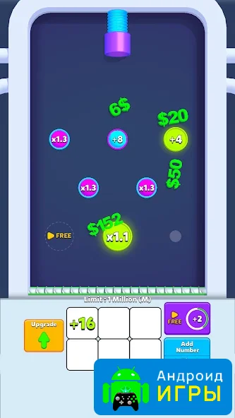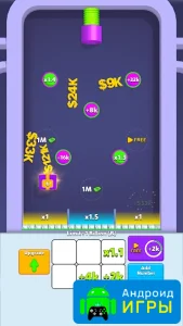 В Digi Merge предусмотрены многочисленные обновления и улучшения, которые позволяют ускорять процесс заработка и открывать новые возможности. Игровые уровни разнообразны: каждый из них имеет уникальные поля, механизмы и расположение клеток, на которых собирается виртуальная валюта. Игроки будут управлять шестью позициями, направляя падающие деньги так, чтобы максимизировать доход. Простое управление и интуитивная механика позволяют легко освоиться, а зрелищный процесс добавляет азарт и увлекательность.Особенности