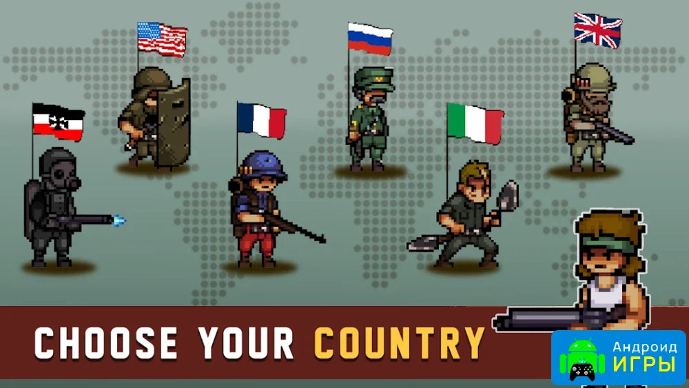 Игрокам предстоит взять под контроль отважного солдата и его войска, используя весь доступный арсенал — пехоту, танки, артиллерию, гранатометы и взрывчатку. Каждый бой требует стратегического мышления: правильно выбирайте оружие для каждой ситуации и тщательно планируйте атаки. Эффектные пиксельные визуализации добавляют игре атмосферности, а зрелищные спецэффекты делают каждое столкновение захватывающим.Историческая кампания и разнообразные уровни