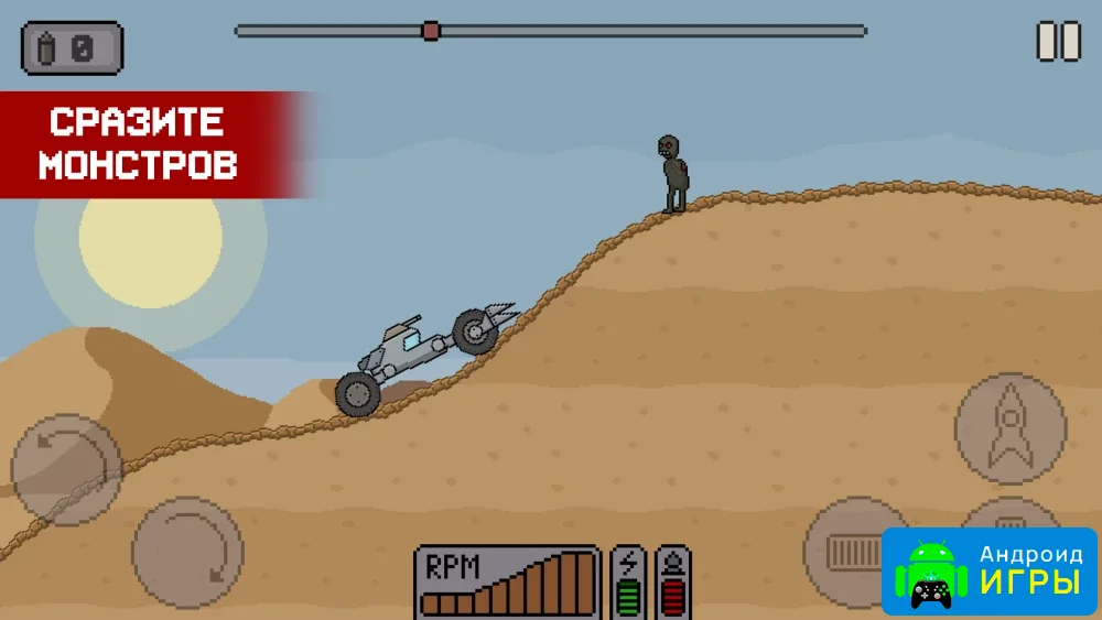 Death Rover - Луноход и зомби предлагает семь уникальных транспортных средств, множество улучшений для техники, разнообразные типы врагов и уникальные уровни с различными испытаниями. Исследуйте планеты, прокачивайте луноход, сражайтесь с монстрами и зарабатывайте игровую валюту для дальнейшего прогресса. Игра сочетает в себе элементы гонок, экшена и стратегии, делая каждый проход новым и захватывающим.Особенности