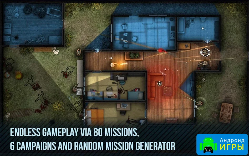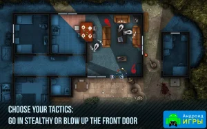 Главная задача игроков — защитить мирных жителей, которые оказались в опасности. Название игры можно перевести как «Взломщики дверей», однако смысл совсем другой: вам предстоит не выносить чужое имущество, а грамотно штурмовать помещения, освобождая заложников и нейтрализуя преступников. Каждый уровень требует тщательной подготовки и стратегического мышления. Вы сами распределяете бойцов, выбираете подходящее снаряжение и продумываете маршрут штурма, чтобы минимизировать потери и успешно выполнить миссию.Игра была портирована с ПК благодаря своей популярности среди игроков, ценящих тактический подход. Вид сверху позволяет наблюдать за всей ситуацией на локации, оценивать позиции врагов и планировать действия заранее. Такой угол обзора делает каждую миссию более управляемой и добавляет глубины стратегии.