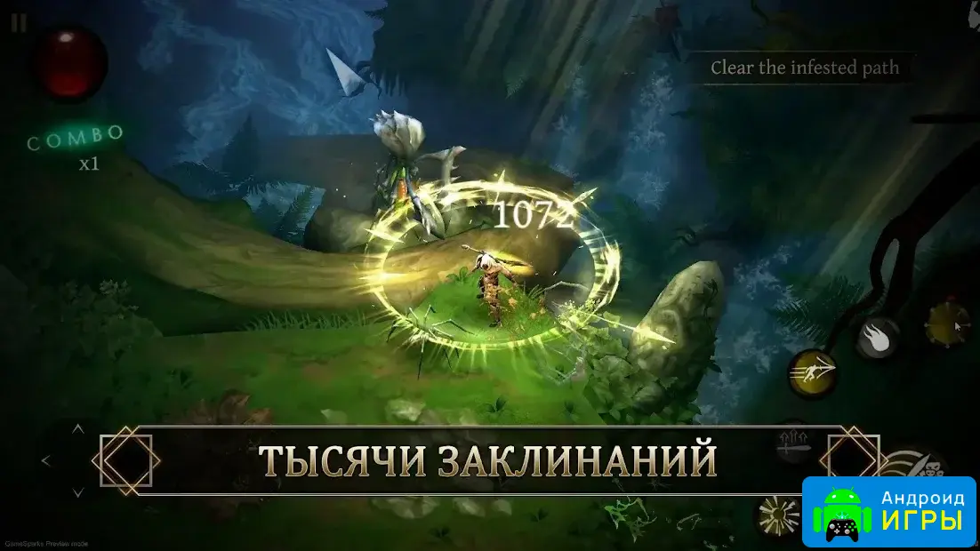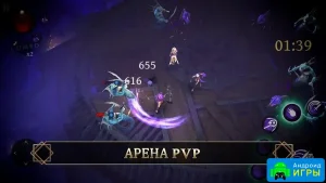Графическое оформление выполнено в 3D с камерой сверху, что позволяет полностью контролировать происходящее на поле боя. Яркие спецэффекты делают каждую атаку и заклинание зрелищными, а HD-детализация добавляет глубины локациям. Управление интуитивно: левый джойстик отвечает за перемещение, а правое колесо с кнопками атаки обеспечивает полный контроль над навыками героя.Взломанная версия и преимущества