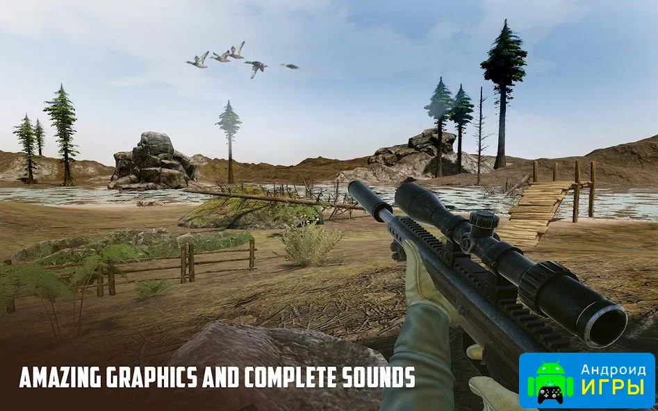 Wild Duck Hunting 2019 выполнена в красочном 3D-оформлении с качественной детализацией окружения и эффектными визуальными элементами. Камера от первого лица усиливает эффект присутствия и позволяет глубже погрузиться в происходящее. Управление интуитивно понятное, поэтому освоиться в игре можно всего за несколько минут.Незабываемые впечатления от игрового процесса