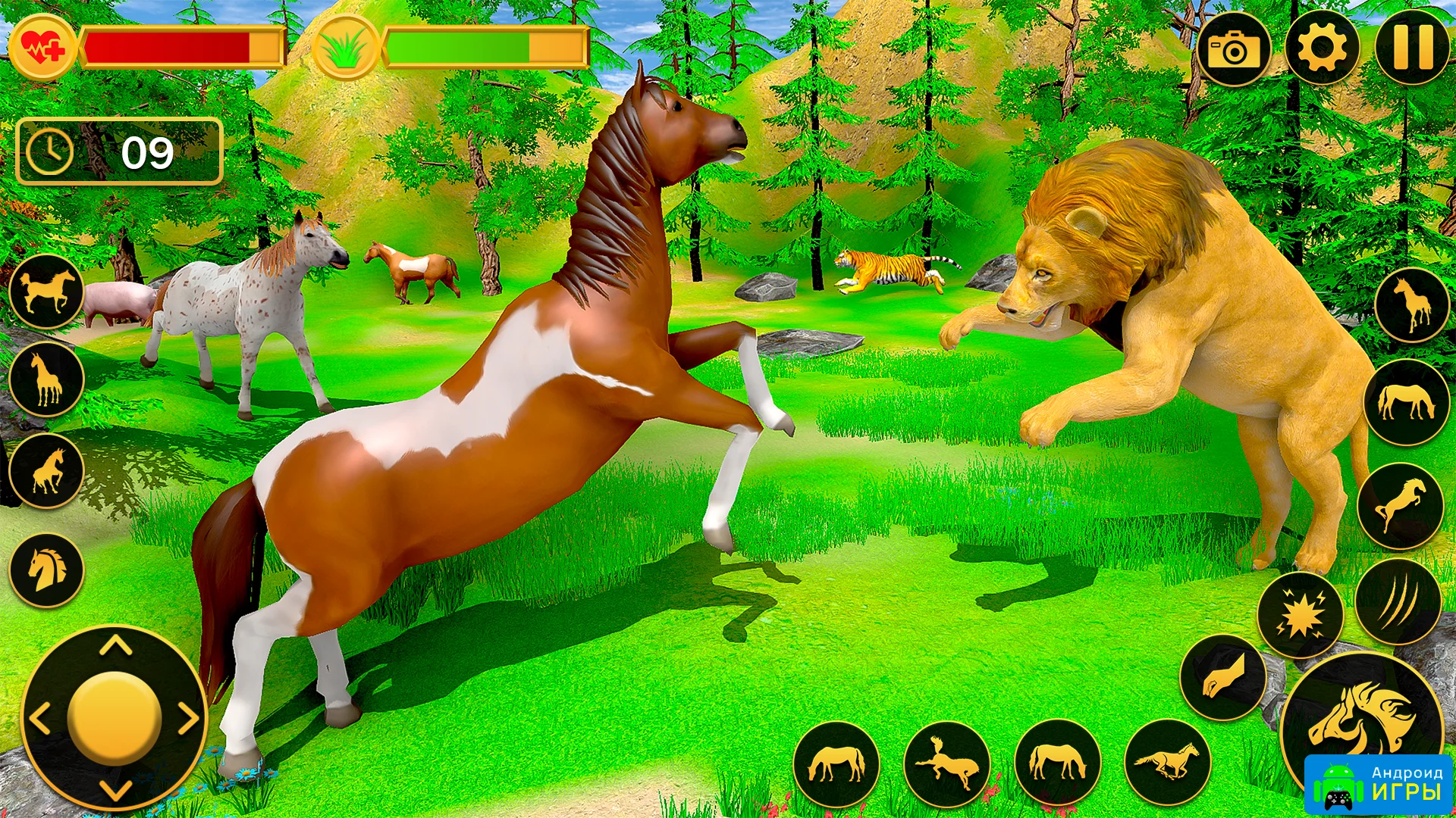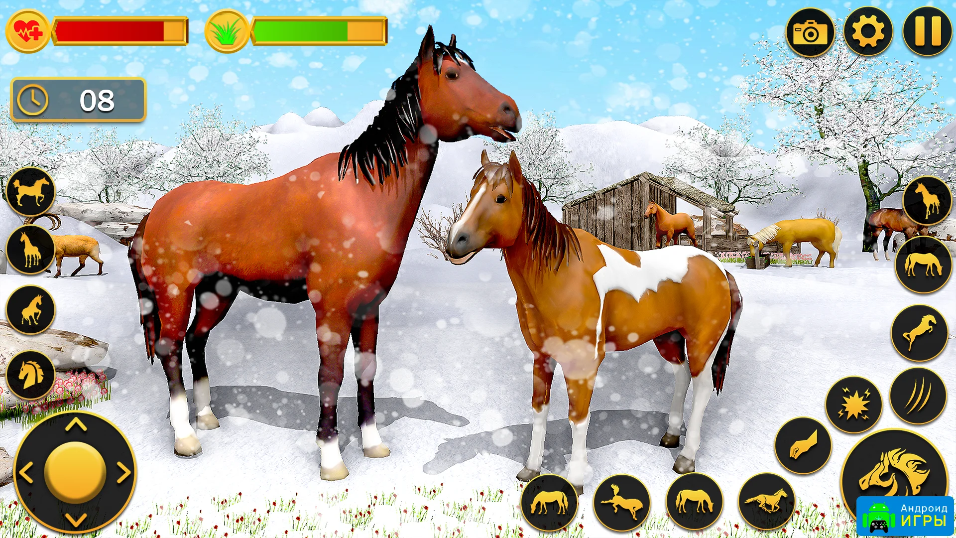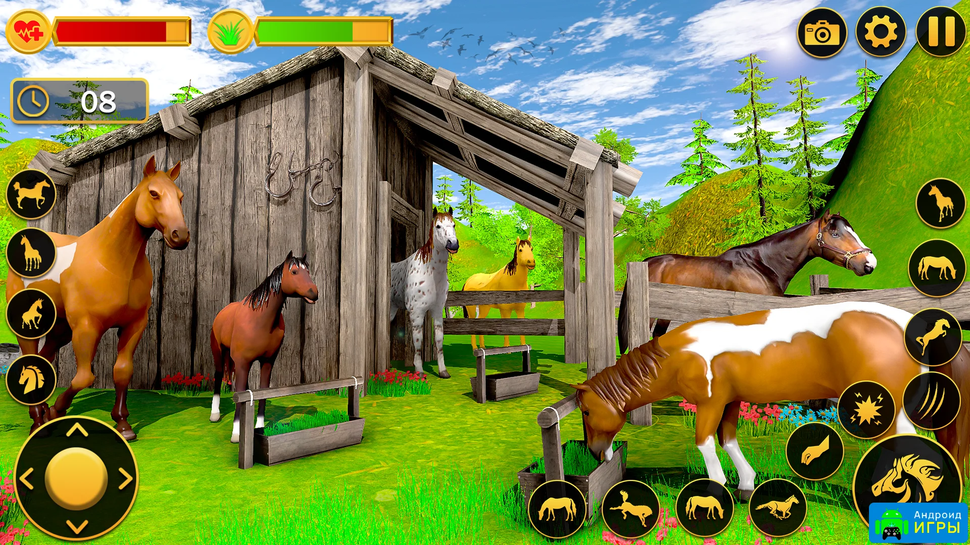 Ultimate Horse Simulator предлагает яркую и детализированную графику, которая создаёт впечатляющий визуальный мир. Эффекты и анимация делают игровой процесс насыщенным и реалистичным, погружая в атмосферу приключений с первых минут. Управление продуманное и простое: левый джойстик отвечает за движение, а справа расположены кнопки взаимодействия с окружающим миром. Игровой процесс ведётся в основном с вида от первого лица, но при желании камеру можно настроить под себя.Скачайте Ultimate Horse Simulator прямо сейчас и откройте для себя увлекательный мир приключений и свободы. Управляйте лошадью, исследуйте огромные пространства и создавайте уникального персонажа, наслаждаясь каждым мгновением игры. Этот симулятор подарит часы позитивного и захватывающего геймплея, подходящего для игроков всех возрастов.