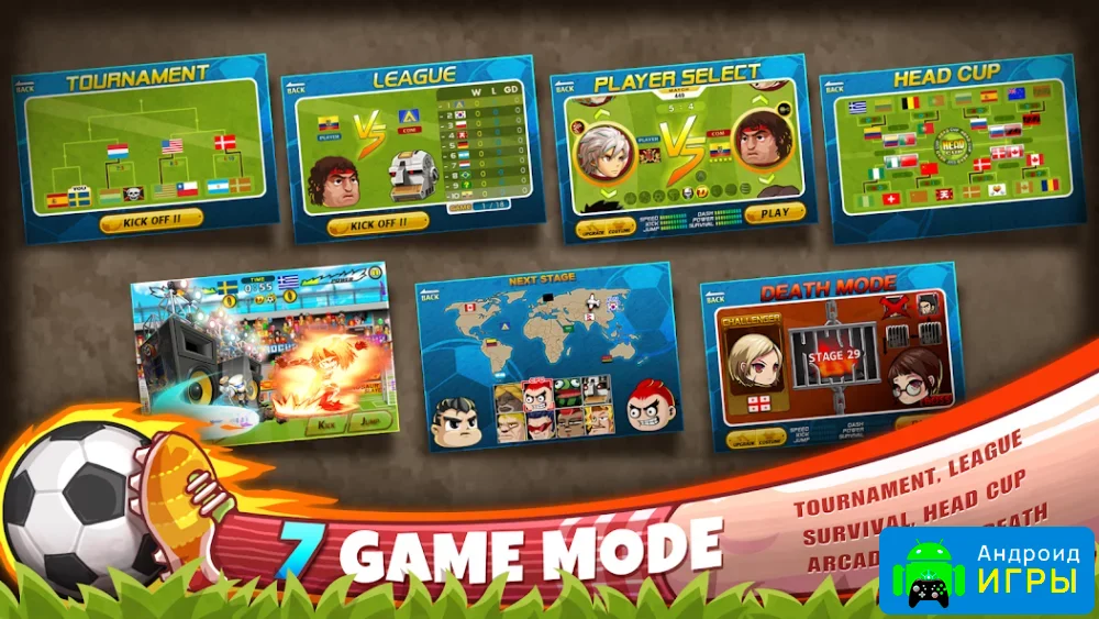 Head Soccer — это яркая и безумно динамичная аркадная игра для Android, которая предлагает нестандартный взгляд на классический футбол. Забудьте о привычных правилах и тактических схемах. Здесь на поле решает не скорость ног, а ловкость и точный расчёт ударов головой. Проект сочетает в себе юмор, азарт и насыщенный экшен, превращая каждый матч в настоящее шоу.