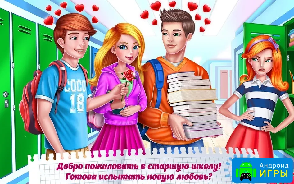 Старшая школа: Первая любовь — это легкая, романтичная и увлекательная игра для смартфонов и планшетов на базе Android, в которой вам предстоит прожить один из самых трогательных периодов жизни. Вы возьмёте под контроль главную героиню и поможете ей не только справиться с повседневными школьными заботами, но и приблизиться к заветной мечте — завоевать внимание парня, к которому она испытывает чувства ещё со времён младших классов.