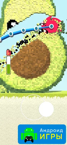 Bucket Crusher обладает легким и интуитивно понятным управлением. Джойстик слева позволяет двигать установку, а лезвие реагирует мгновенно на ваши действия. Камера расположена сбоку, что дает полный обзор происходящего и помогает планировать каждый удар. Даже одной рукой можно легко контролировать процесс, что делает игру доступной в любых условиях — дома, в дороге или на короткой передышке.Красочная, слегка пиксельная графика