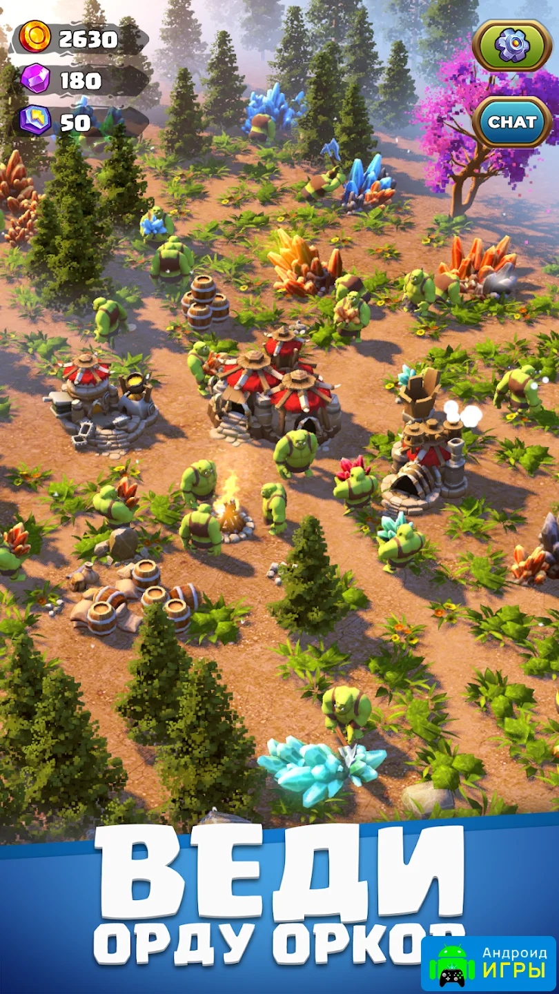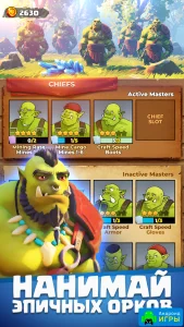 - Нанимайте и прокачивайте орков;