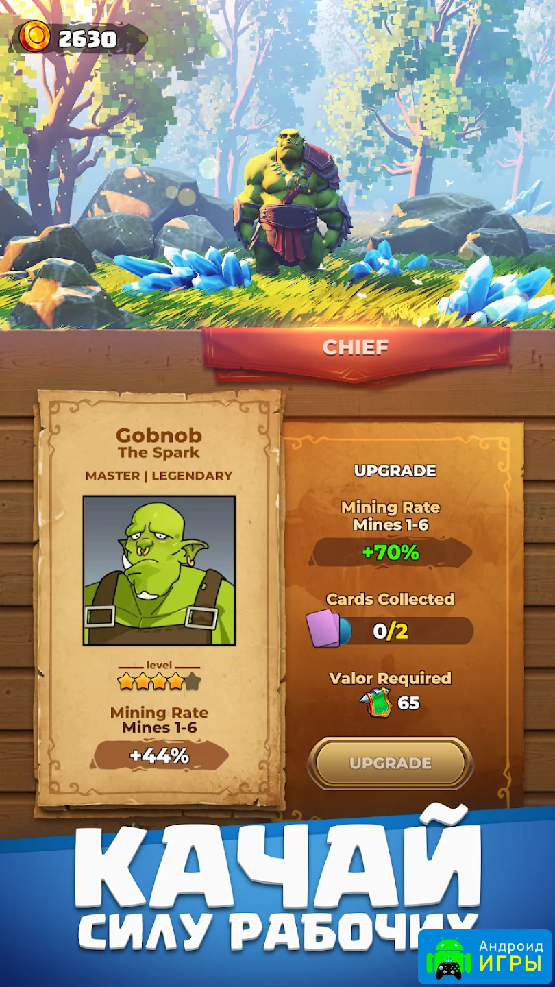 Orecraft: Лагерь орков — это увлекательный казуальный симулятор с элементами кликера, который позволяет игрокам полностью погрузиться в жизнь орков и развивать собственное поселение. В роли главаря орков-шахтеров вам предстоит управлять рабочими, добывать ресурсы и создавать процветающую деревню с нуля. Для любителей стратегии и строительства игра станет отличным способом интересно провести время. На нашем сайте доступна взломанная версия Orecraft: Лагерь орков, где деньги не расходуются, что значительно упрощает развитие лагеря.