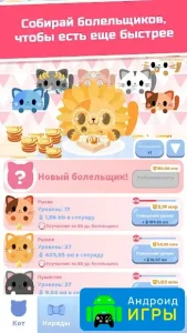Жадный кот: кликер с котиками – это увлекательная и забавная игра для смартфонов и планшетов на Android, где главной задачей игрока становится кормление милых зверюшек и достижение максимальных результатов. Проект сочетает яркую мультяшную графику, простое управление и массу игровых возможностей, делая каждую игровую сессию по-настоящему затягивающей.