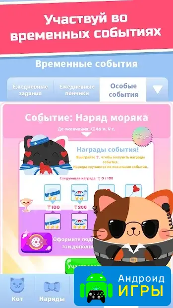 Игра предлагает множество дополнительных возможностей, которые делают геймплей более насыщенным. Вы сможете улучшать и кастомизировать своих котиков, открывать новых зверушек с уникальными внешними видами и особыми способностями, а также участвовать в ежедневных соревнованиях и специальных событиях. Постоянные апгрейды и открытие новых питомцев удерживают интерес и создают ощущение прогресса.На нашем сайте доступна взломанная версия игры, где у вас будет много денег для покупки бонусов, улучшений и новых питомцев. Это позволит быстрее достигать целей и получать ещё больше удовольствия от игрового процесса.