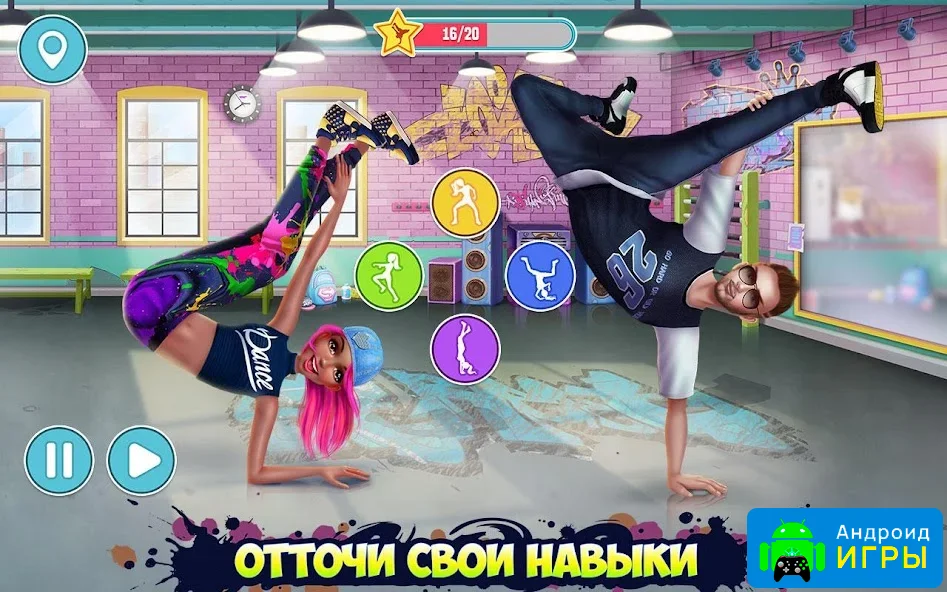 Игроку предстоит собрать собственный коллектив танцоров и вывести его на вершину городских рейтингов. Выбирайте участников с разными способностями, комбинируйте движения и создавайте эффектные номера, способные впечатлить даже самых требовательных судей. Баттлы проходят на разнообразных площадках — от дворовых сцен до крупных городских локаций.Каждое выступление приносит очки, которые помогают продвигаться вверх по таблице лидеров. Чем ярче номер и точнее движения, тем выше шанс обойти соперников. Постоянные тренировки, обновление состава и работа над стилем позволяют команде расти и открывать новые возможности. Только самые настойчивые смогут занять первое место и получить признание уличной публики.