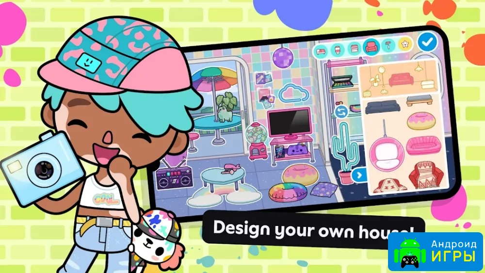 В игре доступно множество уникальных мест, между которыми можно перемещаться простыми свайпами. Каждая зона отличается тематическим оформлением и готовыми постройками. Их можно украшать, менять интерьер и добавлять новые элементы. Есть свободные участки для строительства домов, а также готовые помещения, которые допускают улучшения с помощью мебели и декора.Пользователь сам решает, как будет выглядеть пространство: можно создать уютный дом, современную квартиру или необычную локацию с нестандартным дизайном. Возможности оформления практически безграничны — важно лишь проявить креативность.