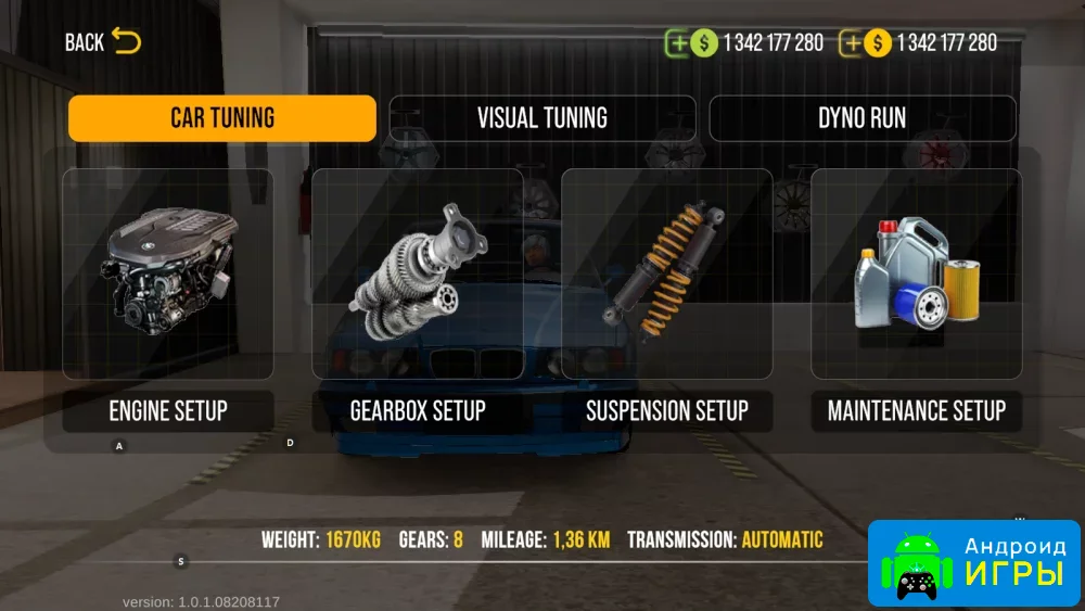 После запуска вы оказываетесь в собственном гараже — центре управления автопарком. Именно тут происходит покупка машин, анализ характеристик и подготовка к заездам. На экране отображаются ключевые параметры транспорта: мощность двигателя, крутящий момент, максимальная скорость, разгон, особенности трансмиссии и масса кузова. Такой подход позволяет осознанно выбирать автомобиль под конкретные задачи — будь то драг-заезд или свободная езда по открытому миру. Игрокам доступно несколько режимов: прохождение уровней с заданиями, динамичный драг-рейсинг, одиночная игра и мультиплеер с реальными соперниками. Каждый формат предлагает собственные испытания и стиль соревнований.Глубокая система тюнинга