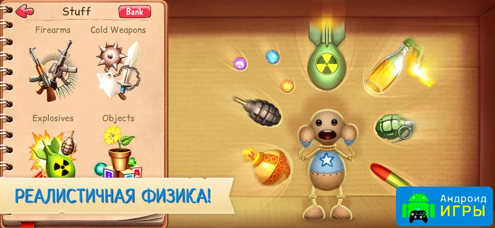 Kick the Buddy - это необычный аркадный проект, в котором игрок взаимодействует с куклой и может наносить ей удары различными предметами. Главная особенность игры — персонаж не проявляет агрессии и всегда остается радостным, даже если получает повреждения. Лишь в момент атаки можно увидеть краткое выражение грусти, но оно быстро сменяется обычным настроением. Основная цель заключается в том, чтобы снять стресс, используя виртуальные способы воздействия на игрушечного героя.