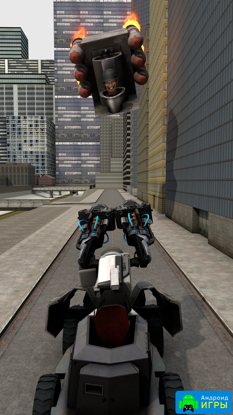 Скибиди-монстры — главная угроза в игровом мире. Эти странные существа представляют собой разнообразных врагов: от мелких чудовищ до гигантских боссов, способных нанести серьезный урон. Каждое столкновение уникально, так как локации и сценарии боев различаются. Сражения могут проходить в темных переулках, на заброшенных фабриках, городских площадках и высотных зданиях, что добавляет разнообразия и напряжения.Улучшение