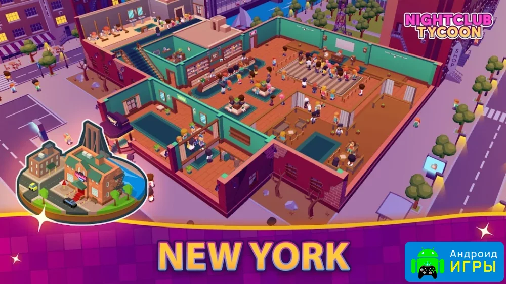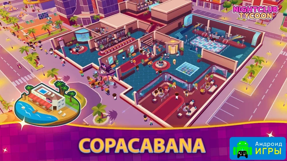Проект выполнен в стильной Low Poly-графике и предлагает игроку заняться управлением одним из самых популярных клубов города. Начните с небольшого заведения и постепенно расширяйте его, зарабатывая деньги, бриллианты и золото. Чем больше посетителей приходит на ваши вечеринки, тем быстрее растёт прибыль.Для успешного развития важно грамотно вкладывать заработанные средства. Улучшайте инфраструктуру, добавляйте новые развлечения и повышайте уровень сервиса. Со временем вы сможете открыть дополнительные клубы и значительно увеличить доход.