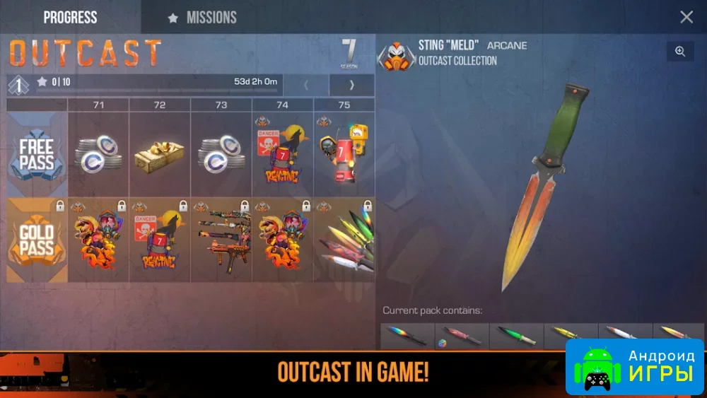 Игра включает уже 5-й сезон, предоставляющий свежие коллекции Fireborn и Revenge, а также новые пистолеты Dual. Любой дубликат можно продать на виртуальном рынке, чтобы приобрести больше кейсов или собрать всю коллекцию полностью. Каждая коробка открывается эффектно благодаря качественным визуальным эффектам и продуманным анимациям.