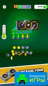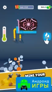 В центре игрового процесса находится развитие майнинг-оборудования. Пользователь начинает с самой простой видеокарты, но по мере продвижения может улучшать технику и увеличивать производительность фермы. Чем мощнее графический процессор, тем быстрее он обрабатывает задачи и тем больше виртуальной прибыли приносит своему владельцу.Геймплей