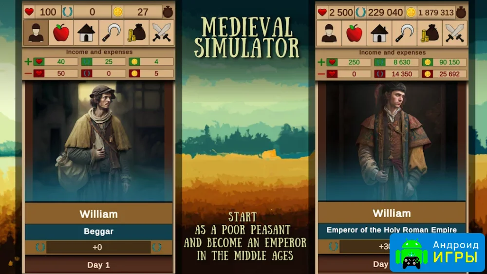 Симулятор Средневековья — это увлекательная экономическая аркада в жанре симуляторов, которая перенесет игрока в эпоху средневековья. В этой игре предстоит построить собственную империю, развивая персонажа от простого крестьянина до великого императора. С помощью взломанной версии доступна игровая валюта без ограничений, что позволяет быстрее достигать значимых целей и выполнять любые задания без задержек.