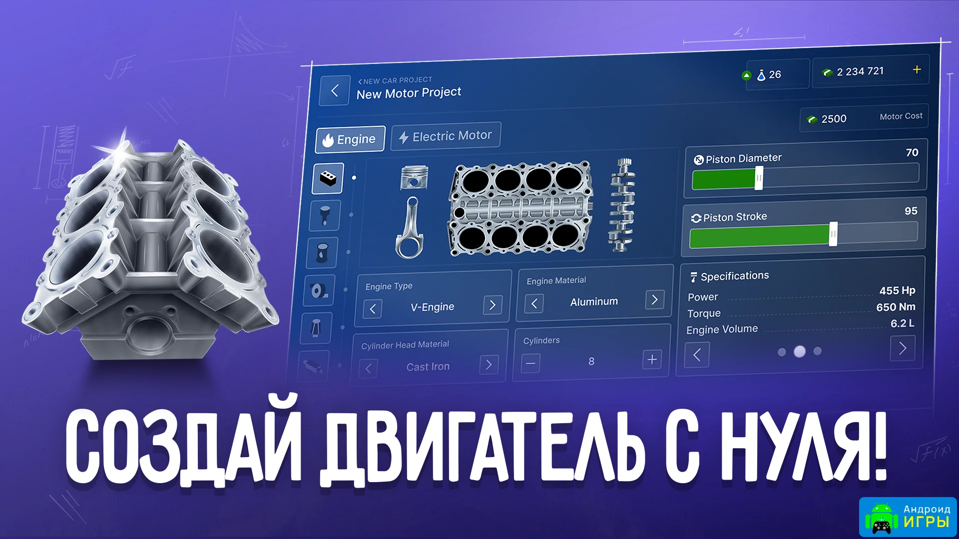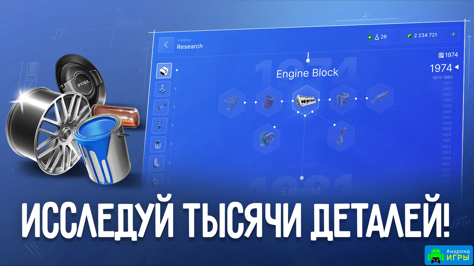 Главная задача игрока — проектировать и создавать автомобили, способные завоевать сердца покупателей. Игра охватывает технологии авто с 1970 по 2023 годы, предоставляя широкий спектр инструментов для кастомизации: двигатели разной мощности, кузова, шасси и декоративные элементы. Начните с простого ремонта и модернизации старых машин, а затем переходите к разработке инновационных спорткаров и премиальных моделей. Фантазия и творческий подход станут главными инструментами для успеха.Достижение вершин автомобильного рынка
