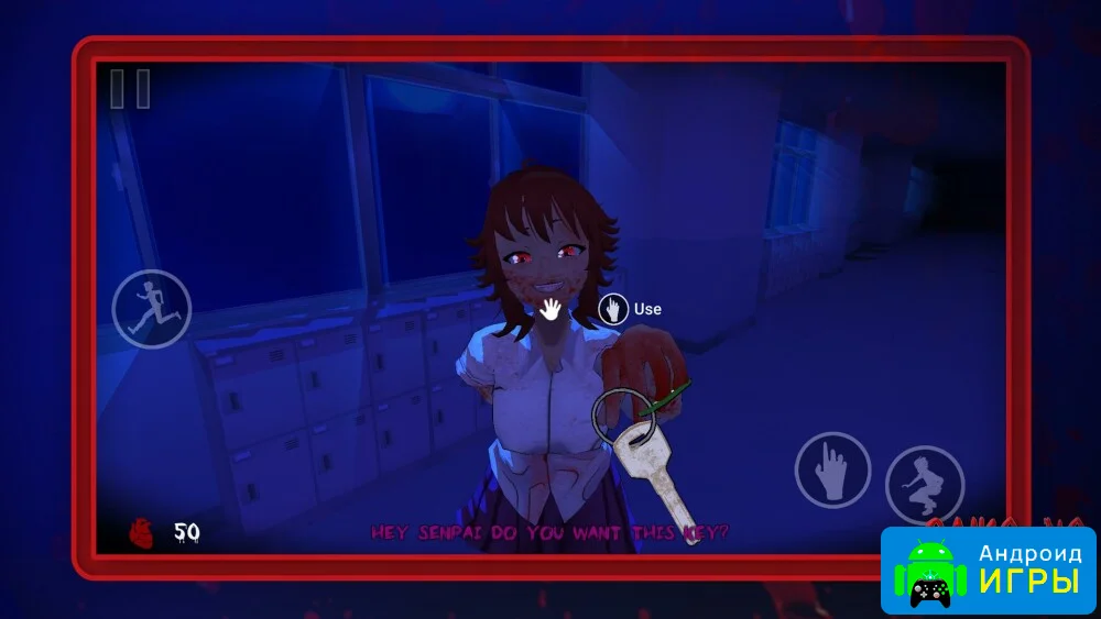 Главная цель игры — выбраться из школы, но сделать это будет непросто. Игроку нужно исследовать все доступные локации, находить полезные предметы и решать головоломки, чтобы открывать запертые двери. В то же время за героем охотится сумасшедшая девушка — антагонист в стиле аниме, который превращает каждую прогулку по коридорам в напряжённое испытание. Любая ошибка может стоить жизни, поэтому важно действовать осторожно, прятаться и внимательно следить за окружением.Атмосфера аниме-хоррора