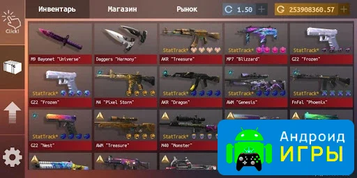 В игре представлен широкий выбор виртуальных предметов, вдохновлённых популярными онлайн-шутерами. Пользователи могут открывать кейсы и получать разнообразные скины, отличающиеся по редкости и внешнему виду. При этом важно учитывать, что все награды существуют только внутри данного симулятора и не переносятся в другие игры.Захватывающий игровой процесс