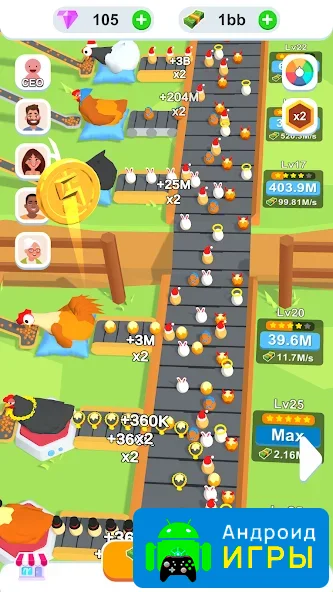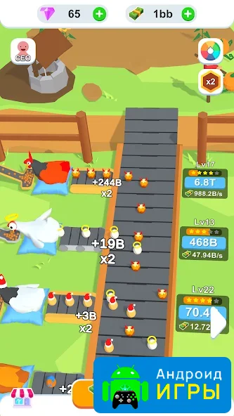 Игровой процесс полностью сосредоточен на создании и расширении прибыльной фермы. В начале у игрока есть небольшой курятник и ограниченное количество куриц. Вы заботитесь о них, обеспечиваете кормом и создаёте условия для стабильного производства яиц. Продажа продукции приносит первый доход, который сразу же можно инвестировать в развитие. Выстраивайте грамотную экономику, чтобы увеличивать прибыль и быстрее расширять производство. Каждое вложение напрямую влияет на скорость роста вашей фермы и открывает новые возможности для масштабирования бизнеса.Геймплей