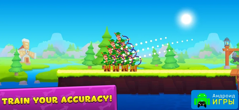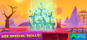 Игрокам доступен широкий выбор персонажей, каждый из которых обладает уникальными способностями и стилем боя. Помимо классических лучников, можно управлять дровосеками, копьеносцами, метателями карт и другими героями. Каждый персонаж имеет собственное оружие, которое можно улучшать, повышая его эффективность в бою. Выполнение заданий приносит награды и помогает ускорить развитие команды.Особенности