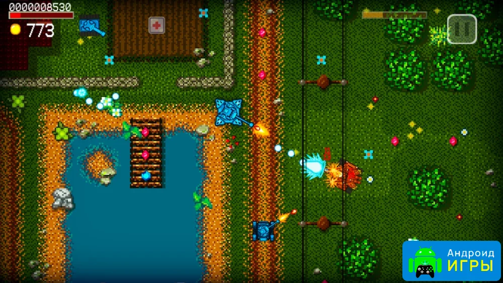 Игра выполнена в ретро-стилистике с пиксельной графикой и видом сверху. Такой визуальный подход создаёт атмосферу классических аркад и придаёт проекту особое очарование. Простое оформление не перегружает экран и позволяет сосредоточиться на сражениях.Игровой процесс и управление