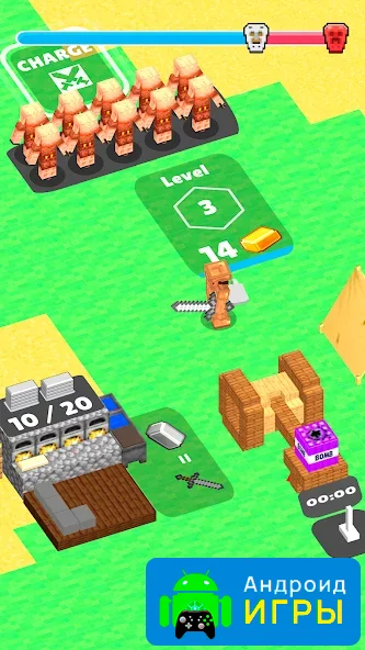 Craft Commander: майни и строй — это увлекательная стратегическая игра с элементами экшена, в которой игроку предстоит взять на себя роль командира армии. Ваша задача — защищать поселение, развивать базу и вести войска в сражениях против вражеских сил.